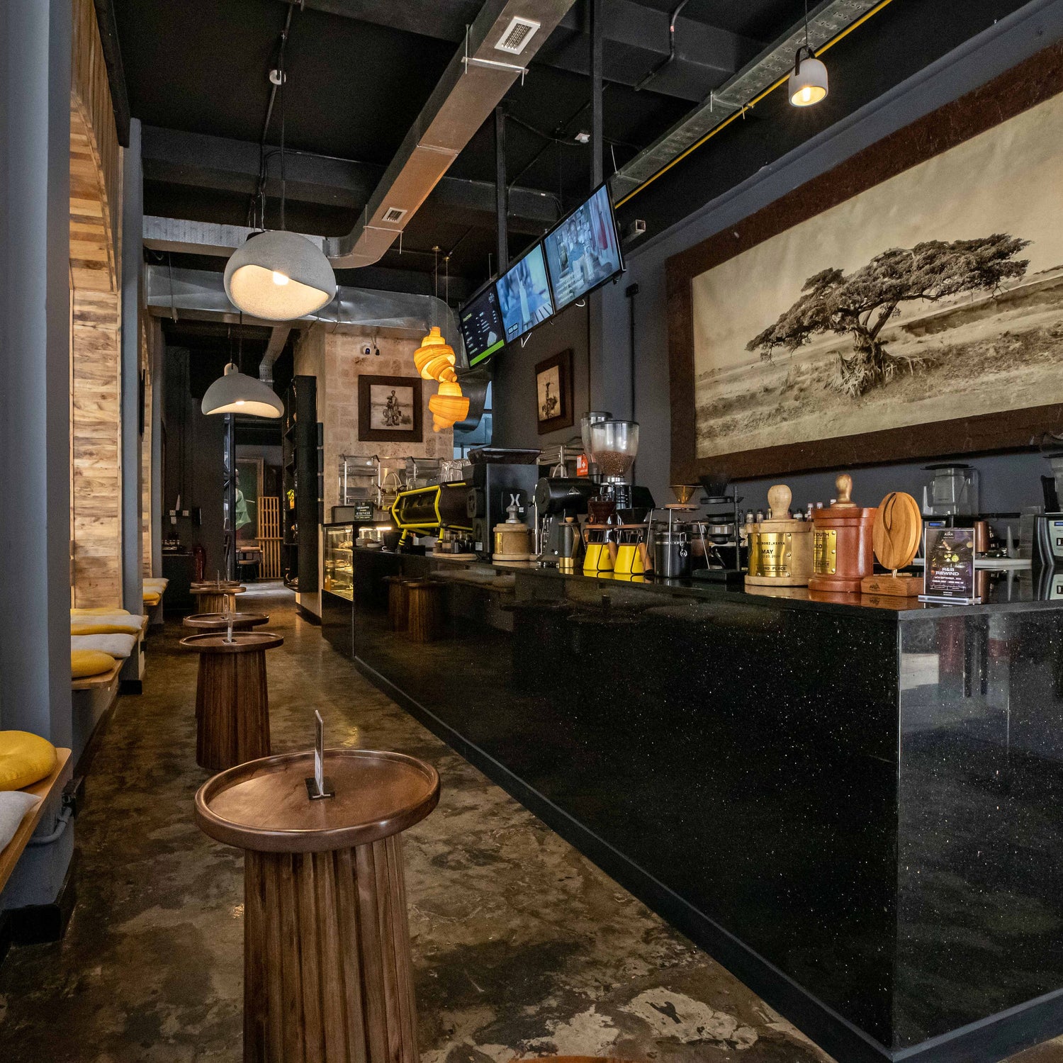 Witness the change from green to brown in our coffee. Immerse yourself in the world of coffee or grab some fantastic natural wines to bring back with you.